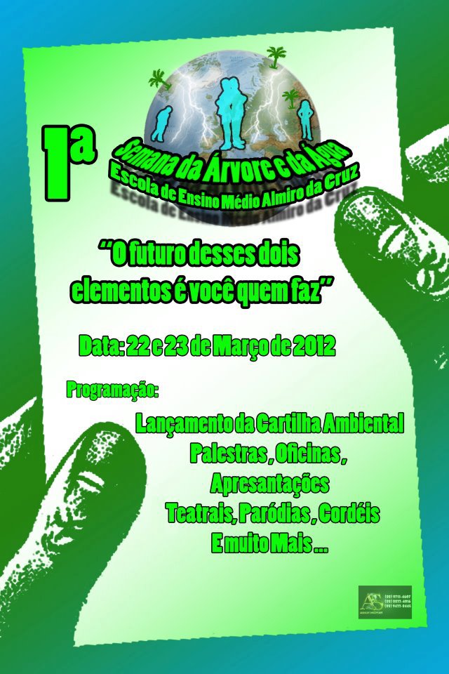 Está sendo realizada, nos dias 22 e 23 de março de 2012, pela EEM Almiro da Cruz, situada no município de Barbalha, a I Semana da Água e da Árvore.